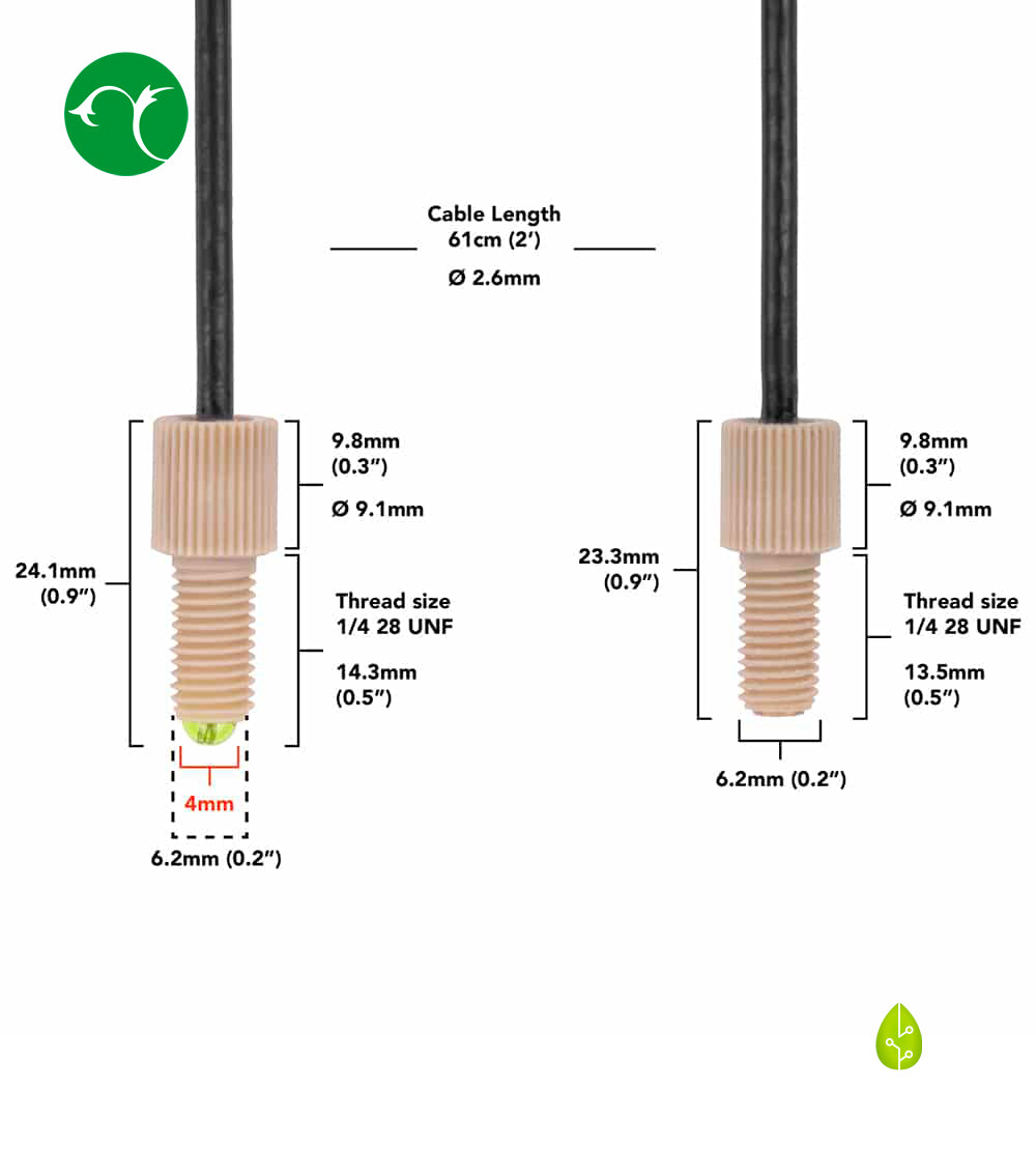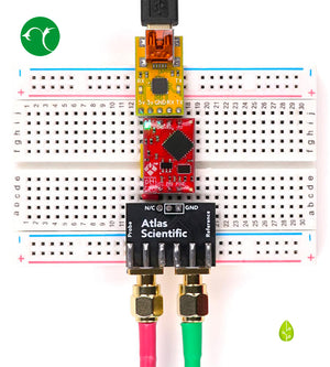 The Atlas Scientific Micro pH Probe was designed for micro-fluidics and other small applications. Because the probe is so small, it had to be built as a half cell pH probe. A ½ cell probe works just like a normal pH probe, but it consists of two separate pieces, the working electrode and the reference electrode. The supplied connector board merges the two halves into one, just like a normal pH probe.