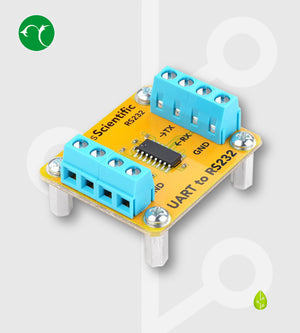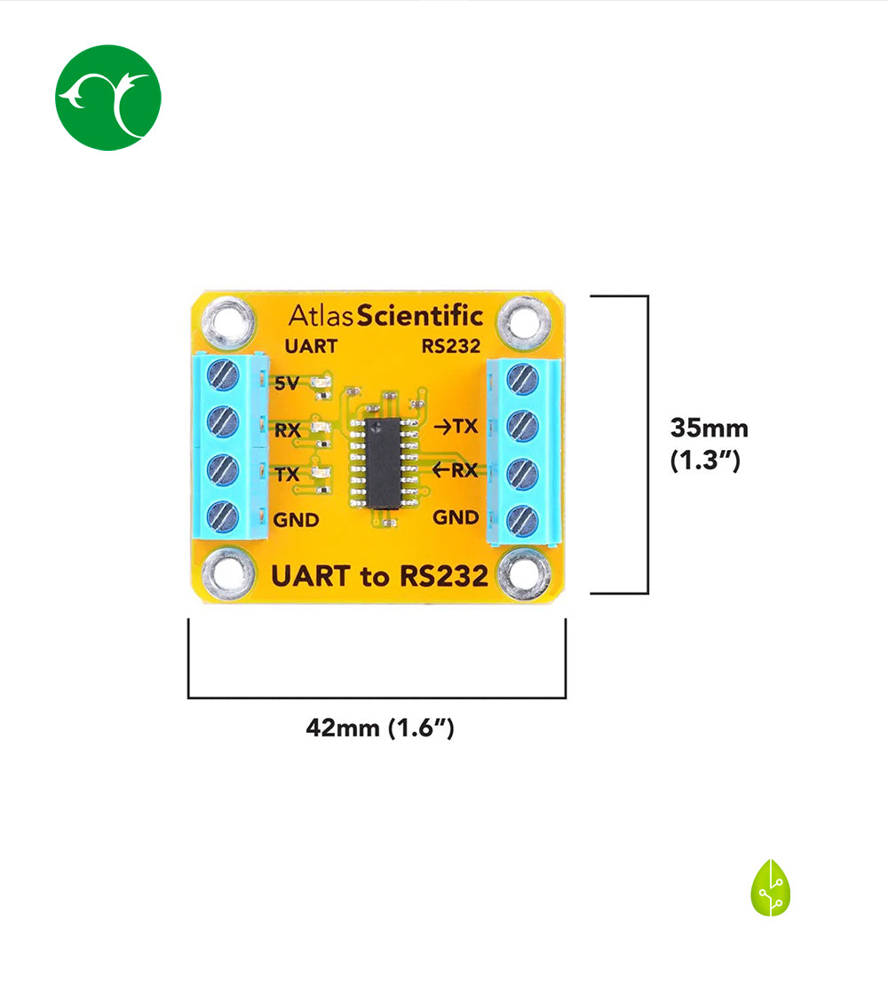 The Atlas Scientific UART to RS232 converter is a simple drop-in component that will convert any UART data signal to RS-232. This is very useful for connecting sensors to PLCs or third-party data loggers.