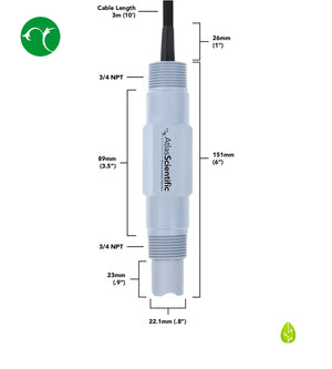 Atlas Scientific Endüstriyel pH/ORP/Sıcaklık Probu, ortamın yıpratıcı elementlerine uzun süre dayanacak şekilde üretilmiştir. Laboratuvar sınıfı problarımızın tüm algılama özelliklerine ek olarak, neredeyse yok edilemez bir muhafazaya sahiptir. Bu prob, pH için düz bir hazneye ve ORP için altın bir diske sahiptir. Dahili PT-1000 sıcaklık sensörü ve 3/4″ NPT dişli gövdesi sayesinde, fazla parça ihtiyacını azaltarak borulara kolayca monte edilebilir ve kimyasal üretim veya yüzme havuzu izleme uygulamalarına mükemmel bir çözüm olarak öne çıkar.